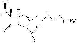 (亚胺培南一水物无菌粉) 名 称 (5S,6R)-3-[2-(Formimidoylamino)ethylsulfanyl]-6-[(1R)-1-hydroxyethyl]-7-oxo-azabicyclo[3,2,0]hept-2ene-2-carboxylic acid monohydrate 分子式 C12H17N3O4S·H2O 分子量 317.36 结构式